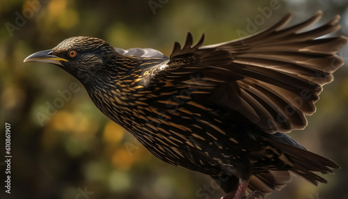 Fototapeta premium Hawk perching on branch, spread wings, freedom generated by AI