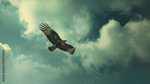 Obraz premium hawk soaring through the sky, riding the thermals with effortless grace and...