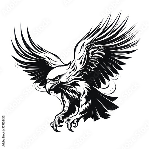 © Rawpixel.com, Obraz premium Hawk tattoo flat illustration kangaroo wallaby vulture.
