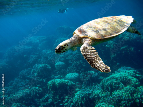 © Vitalii6447, Obraz premium Hawksbill sea turtle (CR species) Hawksbill Turtle - Eretmochelys imbricata.