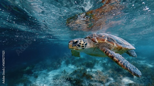 Fototapeta premium Hawksbill Sea Turtle Underwater