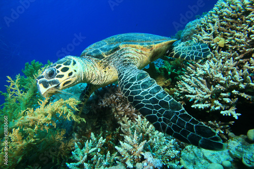 Fototapeta premium Hawksbill Turtle feeding on a coral reef