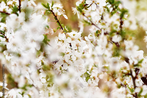Fototapeta premium Hawthorn flowers in spring macro blossom beautiful