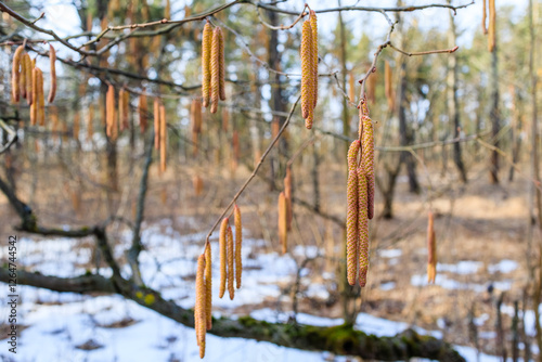 © Chmutphoto, Fototapeta premium Hazel Catkins Blooming in Early Spring