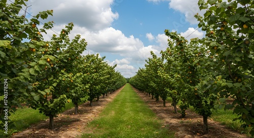 © Creativa, Naklejka premium Hazelnut Orchard on a Sunny Day
