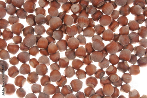 © lkorotova, Fototapeta premium Hazelnuts pattern isolated on white background. Close-up.