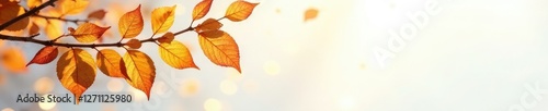 Fototapeta premium Hazels leaves and branches against white background with golden highlights,...