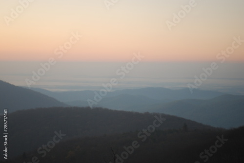 © Rebecca, Fototapeta premium Hazy Blue Ridge Mountain Sunrise Panorama