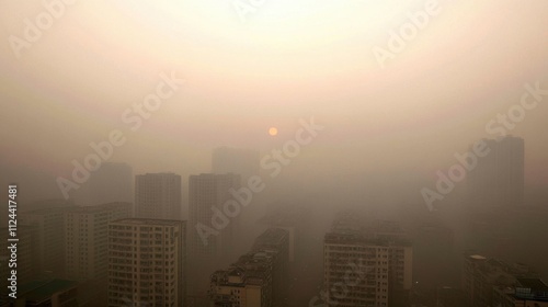 © Media Srock, Fototapeta premium Hazy Cityscape: Enveloped in a Veil of Mist and Mystery