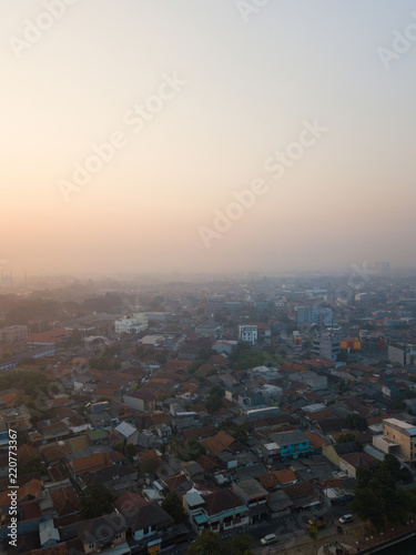 Naklejka premium Hazy morning sky over residential complex in Tangerang, Indonesia.