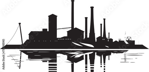 Obraz premium HazyHabitat Vector Pollution Emblematic Logo GrimyGush River Water and Air...