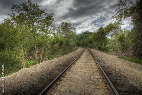 © Andrew Jalbert, Fototapeta premium HDR image of railroad tracks through forest