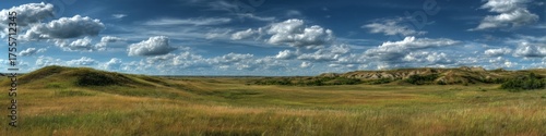 Fototapeta premium Hdr panorama of serene nature landscape under dramatic clouds