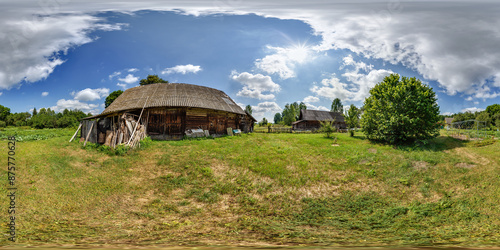 Obraz premium 360 hdri panorama near abandoned dying village in the middle of a forest with...