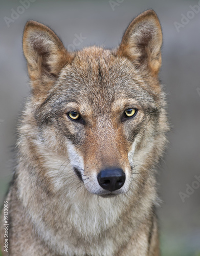 Fototapeta premium Head and neck of young, two year old, european wolf female. Face portrait of...
