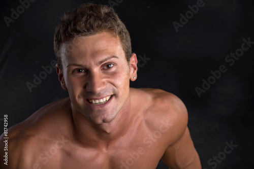 Fototapeta premium Head and shoulder shot of shirtless handsome young man smiling