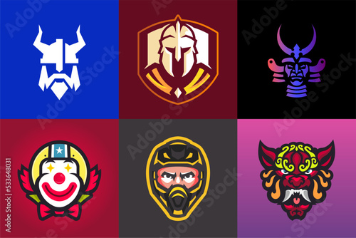 Fototapeta premium Head design logofolio helmet close up face imaginate urban viking gladiator samurai clown biker costume