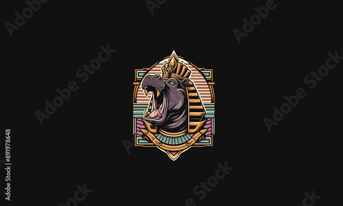 Obraz premium head hippo roar wearing anubis hat vector flat design