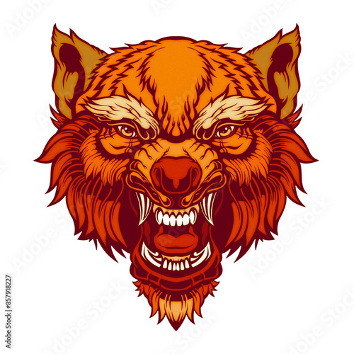 © Sergei Arkhipov, Obraz premium Head of a growling wolf.