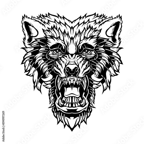 © Sergei Arkhipov, Obraz premium Head of a growling wolf.