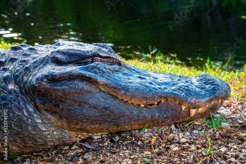 Naklejka premium Head of a sleeping alligator in the Everglades, Florida