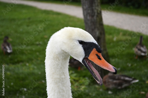 © Mickis Fotowelt, Obraz premium Head of a swan (cygnus) with open beak
