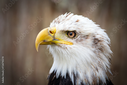 © Saeedatun, Obraz premium Head of adult Bald eagle with brown and white feathers.