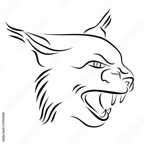 Obraz premium Head Of Angry Lynx Ink Line Art