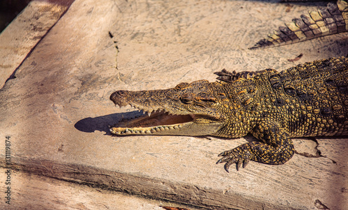 Fototapeta premium Head of crocodile on a farm