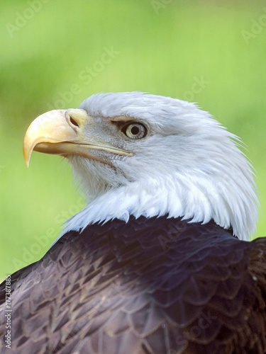 Fototapeta premium Head of mature Bald Eagle, looking back.