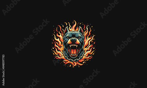 © josoa, Obraz premium head pit bull roar with flames vector mascot design
