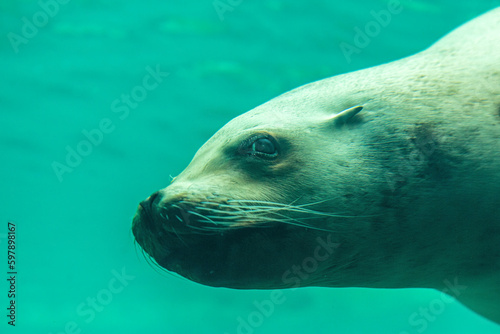 © Annabell Gsödl, Obraz premium Head portrait of a sea lion underwater