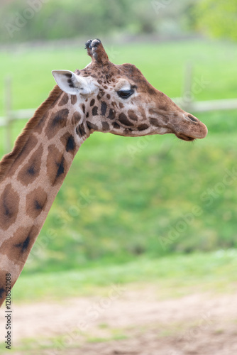 © tom, Obraz premium Head shot of a reticulated giraffe (giraffa camelopardalis)