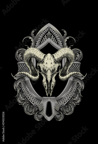 Fototapeta premium Head skull goat with ornament artwork illustration