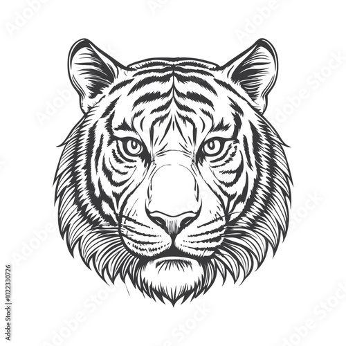 © tarakacraft, Obraz premium head tiger drawing hand drawn vector illustration