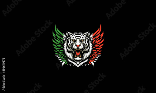 Fototapeta premium head tiger roar with wings italy vector flat design