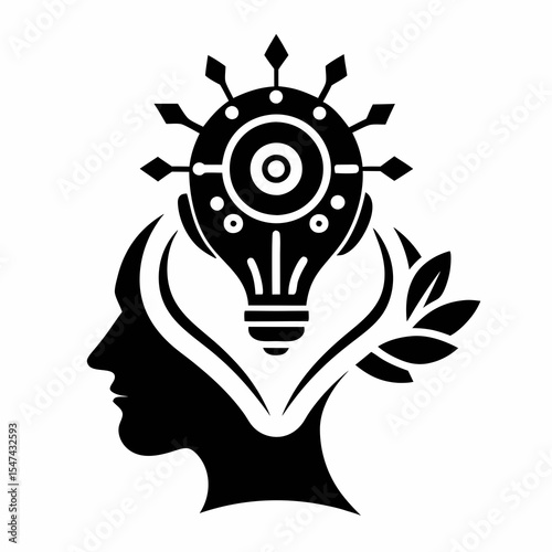 © Ayaat, Fototapeta premium Head with lightbulb representing idea isolated on white background