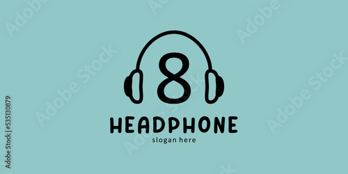 © naroom, Fototapeta premium Headphone Logo Design with Letter 8