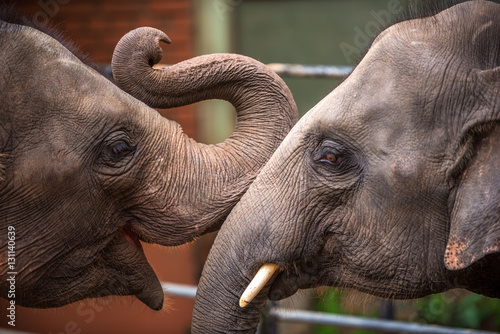 Obraz premium Heads of Asian elephants in Sri Lanka