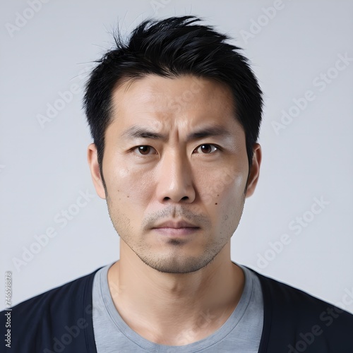 © Janis, Obraz premium Headshot of a 35-year-old Japanese man with serious expression