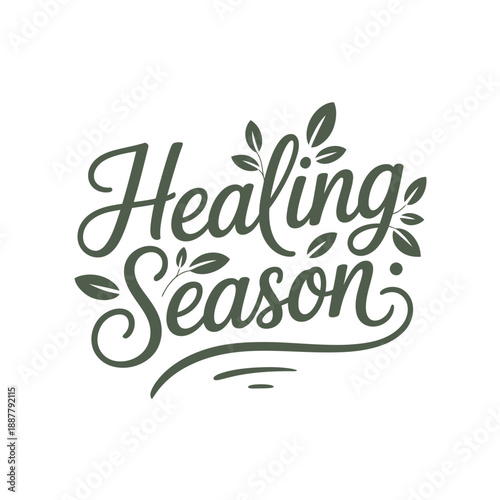 Obraz premium Healing season decorative script typography with organic leaf accents poster...