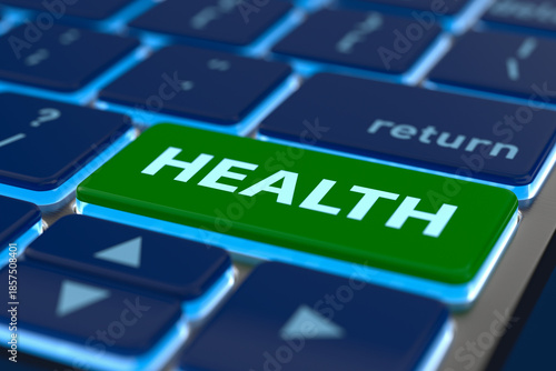 Fototapeta premium Health button on computer keyboard. 3D illustration
