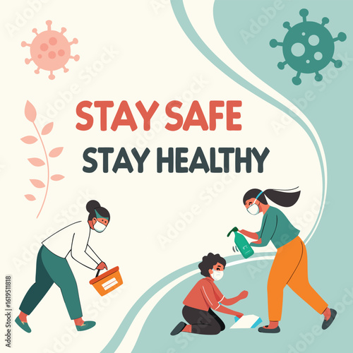 Obraz premium Health campaign poster with "Stay Safe, Stay Healthy generated by ai