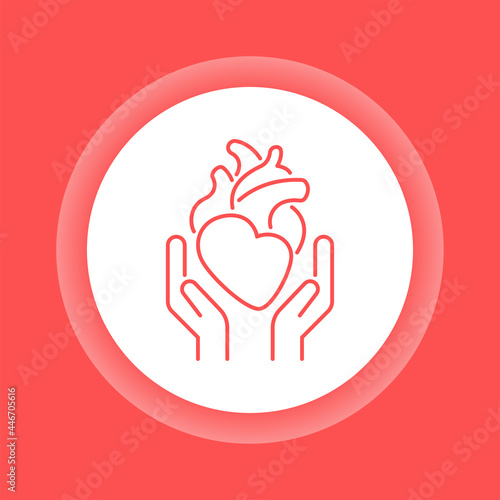 © Анжела Алікіна, Obraz premium Health care cardiovascular system color button icon. Cardiology.