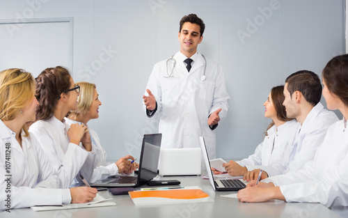 Fototapeta premium Health-care workers and head physician at colloquium in clinic