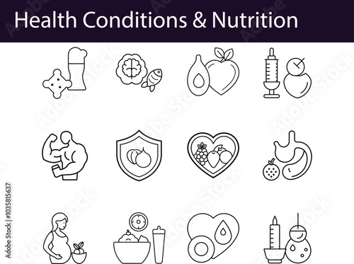 © Bappaditya Roy, Fototapeta premium Health Conditions, Nutrition, and Wellness Icons