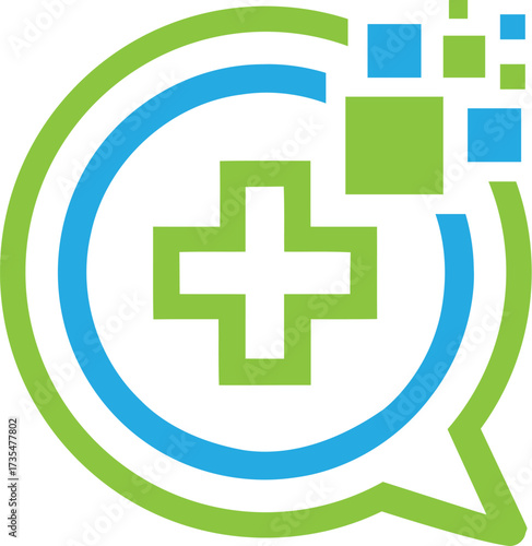 © Creative Queen, Obraz premium Health consult logo design template. Doctor chat talk logo design vector.
