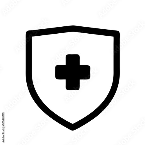 © Vasilina FC, Obraz premium Health Insurance Concept Shield Icon in Monochrome Style