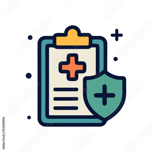 © KangBekgron, Obraz premium Health insurance form with shield icon. Icon symbol illustration