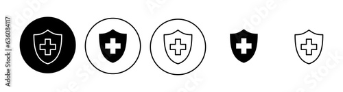 © AAVAA, Obraz premium Health insurance icon set. Insurance health document icon